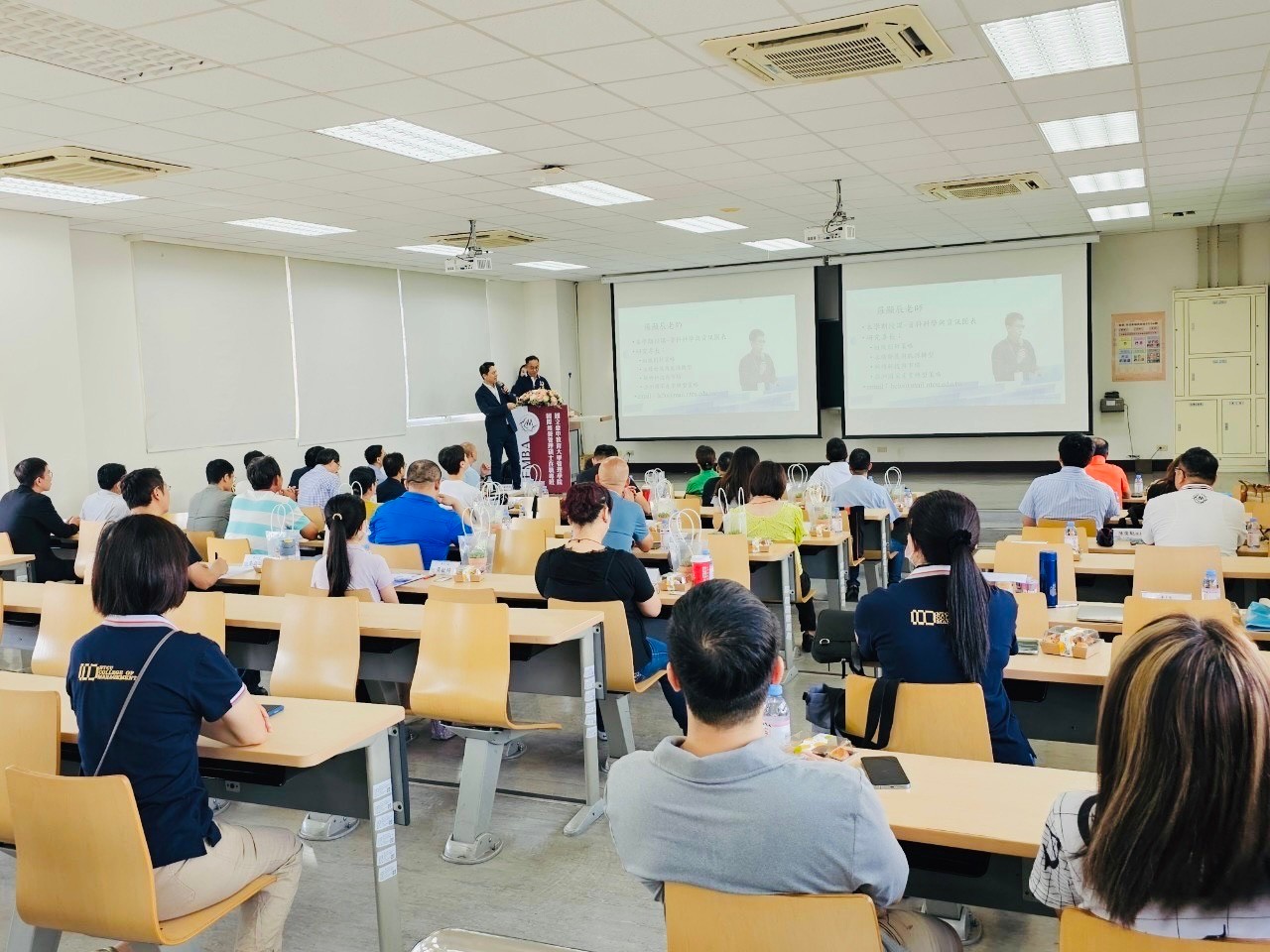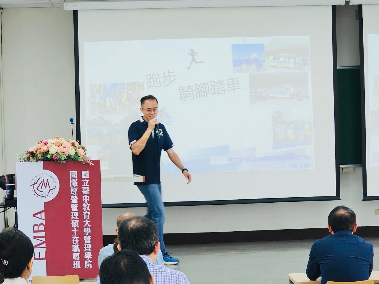 113.08.3.第11屆113級EMBA新生座談會,首先管理學院林院長欣怡代表,熱烈歡迎在場所有新生同學來到臺中教大EMBA為期兩年的學習.EMBA楊執行長宜興介紹課程特色及授課師資,林政逸老師擔任本班導師.管院教授群也親臨現場致歡迎之意。
